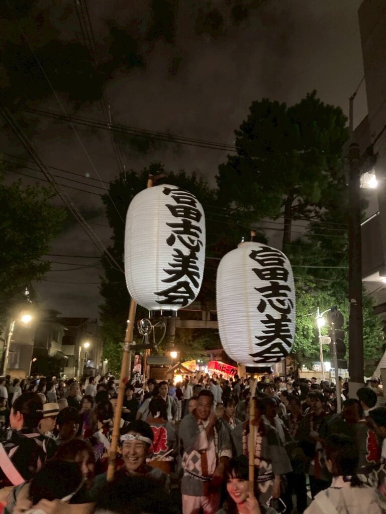 富志美会では例年通り提灯を華やかに飾り付け、勇壮な山車と威勢の良い神輿を巡行し、町中が活気と歓声に包まれました。